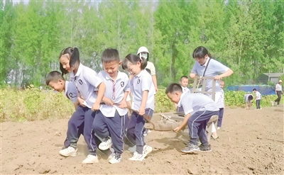 田间课堂,从播种到收获的生命教育。在实践基地、校园种植园里,学生经历完整的农事周期。在农业专家指导下,将抽象的农业知识转化为实践体验。春分时节,孩子们在松软的土地里埋下种子。立夏过后监测土壤墒情,用直尺测量幼苗高度,在对比不同地块的生长差异中理解光照、水分对作物的影响。秋天,孩子们捧着沉甸甸的果实,真切感受到“一粥一饭,当思来处不易”的深意。这种沉浸式劳动教育,让学生在翻土播种中学会尊重劳动、勤俭节约,在抗旱防虫中培养责任担当,在丰收喜悦中领悟生命坚韧。