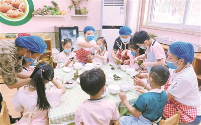 特色化食育彰显育人亮点。将食育与节日文化融合,比如中秋节制作冰皮月饼,让幼儿在揉面、包馅、压模中了解月饼的种类及南北中秋节饮食习俗的差异;与市中医院共建儿童食养实践基地,为幼儿开展中医九种体质辨识,建立个性化健康档案;依据节气变化制订四季食谱,将山药、莲子等药食同源食材融入日常餐点,提升幼儿整体体质水平;邀请市中医院专家对教师、家长进行培训,并通过微信公众号推送养生知识,形成园内指导、家庭落实的健康共育闭环。