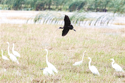 鹮的羽毛在不同光线下会呈现出不同光泽,有着“湿地彩虹”的美誉,属国家一级保护动物,一度被认为在中国绝迹。 新华社发 薛美丽 摄