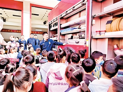 11月8日上午,郾城区淞江街道许洼小学幼儿园组织孩子们到郾城区消防救援大队,开展以“全民消防 生命至上”为主题的消防安全教育活动。胡苗苗 摄