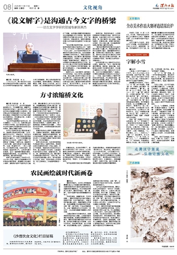 如何将许慎文化以通俗的方式向大众普及,陈英杰说:“如今,很多地方都建有博物馆、展览馆,展品丰富,但多数观众拍照打卡后便匆匆离开,并未真正理解其文化内涵,展览沦为文化作秀。这对文化传播是有害的。”他建议,文博单位要把真实而深刻的文化传给大众:一方面,组织方要深入了解学术界的相关研究成果,并以通俗的语言、新颖的形式将其融入展览;另一方面,要积极提升讲解员的综合素质,使其全面掌握历史信息并向大众进行有效传达,实现真正的文化传播。