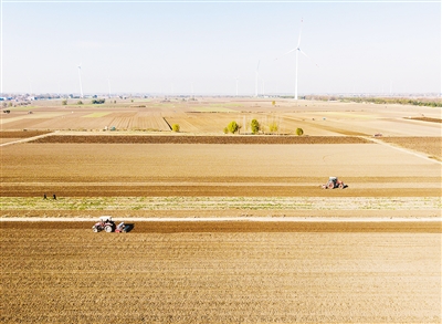 11月20日,临颍县王岗镇田间一派忙碌景象。据种植户郭超杰介绍,他承包的400亩田一天就能播种完毕。当日,记者从市农业农村局了解到,目前我市小麦播种面积已达九成。本报记者 杨 光 摄