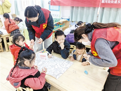 11月20日,源汇区顺河街街道东大街社居委工作人员走进泰山中路小学幼儿园,为孩子们带来一场别开生面的创意卷轴画活动。本报记者 孙 震 摄