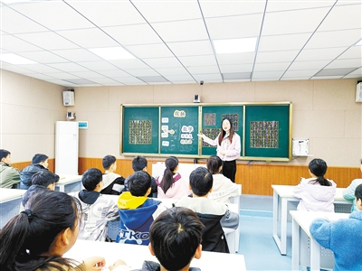 ↑ 11月12日,源汇区教育局教研中心邢燕和李平华带领许慎小学骨干教师走进问十乡初级中学,为该校学生作“趣味数学 思维共生”专题授课。董威远 摄