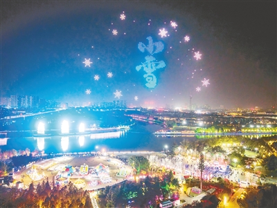 11月22日迎来小雪节气。当天晚上,千机飞“只有漯河”无人机表演以“小雪节气”为主题,以夜空为幕、灯光为笔描绘出冬日浪漫梦幻的唯美画面,为市民带来了一场璀璨的光影秀。