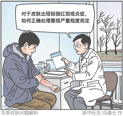 开始供暖后空气干燥,不少人出现皮肤瘙痒、脱屑等问题。专家提示,对于皮肤出现轻微红斑或炎症,如何正确处理需要视严重程度而定。若仅为轻微发红,可先采用冷湿敷,同时停用刺激性护肤品(如含有高浓度果酸、水杨酸的产品)。 新华社发 冯德光 作