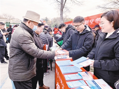 ①12月4日,源汇区在双汇广场开展宪法集中宣传活动。活动现场,工作人员通过发放宣传资料、设置法律咨询台、摆放宣传展板等形式,向群众普及法律知识,耐心答疑解惑。本报记者 范子恒 摄