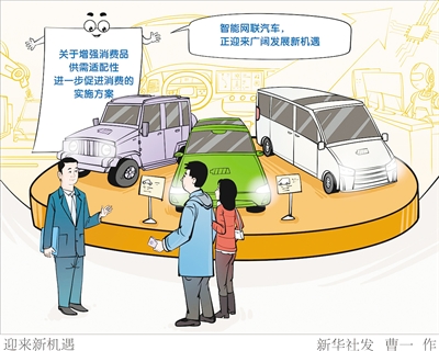 新出台的《关于增强消费品供需适配性进一步促进消费的实施方案》提出,到2027年,形成3个万亿级消费领域和10个千亿级消费热点。智能网联汽车作为重点布局的3个万亿级消费领域之一,迎来广阔发展新机遇。新华社发