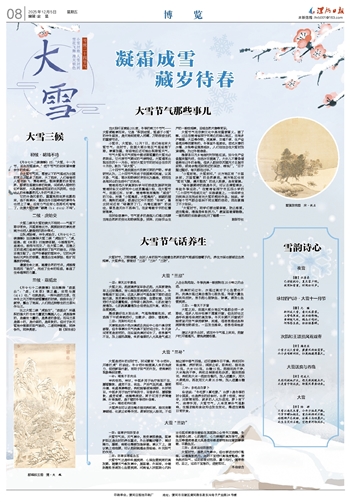 小雪尽,大雪始。12月7日,我们将迎来大雪节气。此时节,我国大部分地区气温逐渐下降,寒意加重,有些地区还可能出现降雪天气。