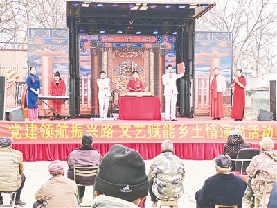 十二月六日、七日,中原琴书艺术团走进临颍县石桥乡、舞阳县孟寨镇开展“党建领航振兴路 文艺赋能乡土情”文艺演出活动。图为舞阳县孟寨镇吴庄村演出现场。