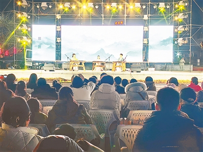 首先登场的是“刘氏唢呐”第六代非遗传承人刘朋及其学生带来的唢呐齐奏。高亢的乐声划破夜空,瞬间点燃全场热情。李紫齐、程煊朴两位青年演奏者带来的古琴齐奏《映山红》,琴声悠扬,如同行云流水,赢得现场阵阵掌声。