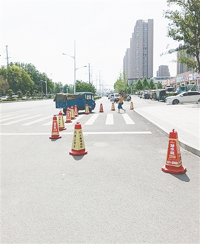 辽河路与太白山北路交叉口向西约80米路南,主路面乱摆放反光锥。