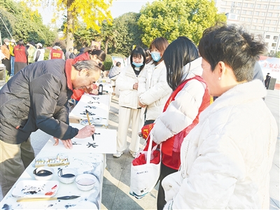 书画爱好者现场创作。本报记者 张玲玲 摄