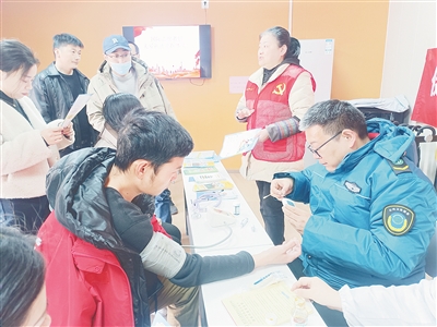 十二月五日,源汇区顺河街街道戏楼后街社居委联合源汇区总工会、人民西路卫生服务中心在“源汇小哥”红色驿站举办义诊活动。
