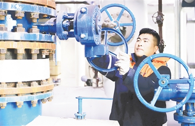 12月10日,河南省焦作市温县一家热力公司的员工在巡检调试热力设备。