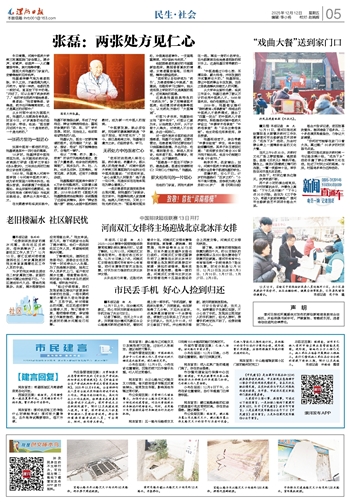 12月7日上午,在沙澧河风景区,热心市民刘明堂将捡到的手机交给了失主付女士。
