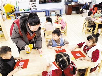 12月24日,源汇区顺河街街道东大街社区联合源汇区泰山中路小学幼儿园举办了手工拓印画活动。本报记者 孙 震 摄