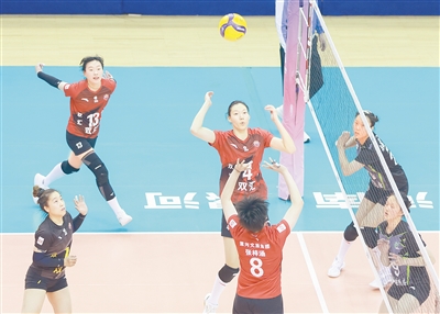 第二局,双方在网口展开激烈争夺,攻防转换节奏加快,比分交替上升。第三局,河南双汇女排加强拦防,一路领先,最终以大比分3比0战胜对手。