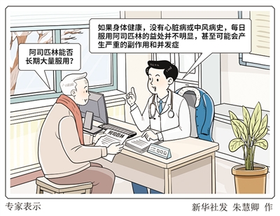 对于大多数成年人来说,偶尔服用一两片阿司匹林来缓解头痛、身体疼痛或发烧通常是安全的。如果身体健康,没有心脏病或中风病史,每日服用阿司匹林的益处并不明显,甚至可能会产生严重的副作用和并发症,包括可能增加出血性中风的风险、胃肠道出血的风险以及导致过敏反应等。新华社发