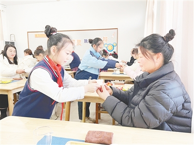 ③1月7日,郾城区东街小学茶艺社团举办亲子茶话会,孩子们为家长献上了精心准备的茶艺表演。马威威 摄