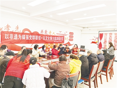 →1月12日,源汇区顺河街街道东大街社区组织辖区居民举办手工拓印年画活动。本报记者 孙 震 摄