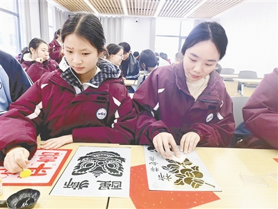 1月8日下午,漯河二高说文解字社和学生未来发展规划社举办了“福润新春·字里藏情”主题活动,通过文化讲解与非遗实践相结合的方式,探寻“福”字的深厚底蕴,体验传统拓印技艺的魅力。陈 琦 摄