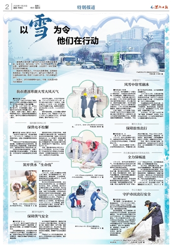 1月19日,该支队累计出动执法人员60余人次、执法车辆10台次,抛撒融雪剂5000多公斤。李云杰 左 莹