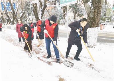 1月20日,市委老干部局组织志愿者清除天山路积雪。