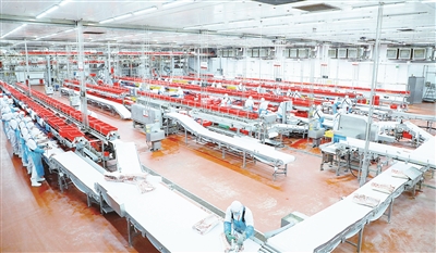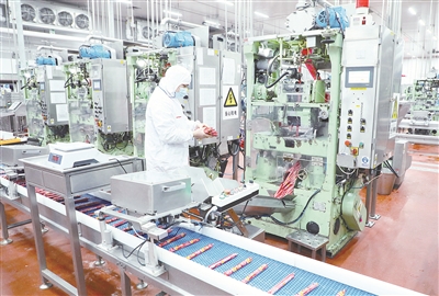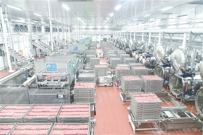 同样进行智能化升级的肉制品生产车间,引入了国际一流生产设备和智能模块,实现智能排产、综合调度、信息采集、数据分析及能源管理等全流程的智能化管控。