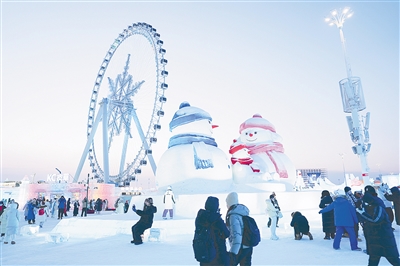 寒冬时节,哈尔滨冰雪大世界园区流光溢彩,吸引了来自天南海北的游客观赏游玩,畅享冰情雪趣。