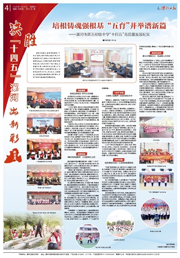 春风化雨,润物无声;弦歌不辍,砥砺前行。“十四五”期间,漯河五中在党建引领下守正创新,在“五育”并举中培根铸魂,在协同共育中凝聚力量,在教育教学中提质增效,交出了一份亮眼的高质量发展答卷。站在新的发展起点,该校将继续秉持教育初心,深耕教育沃土,以更饱满的热情、更务实的作风,书写教育高质量发展的新篇章,为培养担当民族复兴大任的时代新人贡献更大力量。
