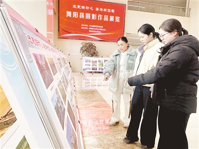 1月27日,由舞阳县委宣传部主办,舞阳县文学艺术界联合会、舞阳县摄影家协会协办的“光影映初心 奋进新征程”舞阳县摄影作品展在舞阳县为民服务中心开幕。图为群众在观展。