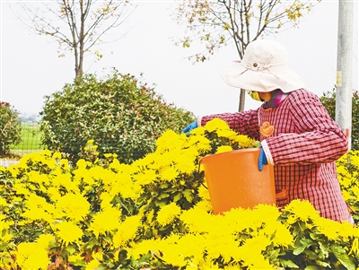图③为2025年10月,半坡朱村村民在菊花园内摘菊花。本报记者 王晓东 摄