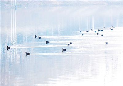 “白骨顶鸡在这里聚集,主要原因是此处水温较高、食物丰富。群居有利于其防御鹰类等天敌。”梁新星说,白骨顶鸡对栖息地的水质和水生植被状况要求较高,它们在此驻足是沙澧河生态环境持续向好的直接体现。