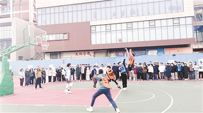 近日,漯河实验高中“阳光体育健康运动”系列活动圆满落幕。图为篮球比赛现场。张路洋 摄