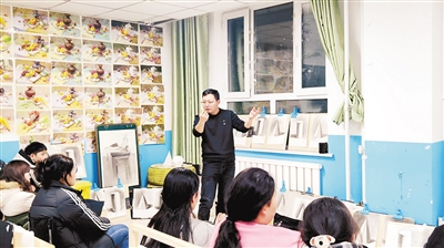 初到伊吾,张会强便面临着前所未有的挑战。“边疆学生的美术基础参差不齐,不少孩子甚至没接触过系统的绘画训练,简单套用内地教学模式肯定行不通。”他在教学日志中写道。为破解这一难题,张会强深入调研学情,创新性地提出“精准赋能”教学理念,量身定制分层教学课程体系。在素描课堂上,他推行阶梯训练法,从线条勾勒到构图布局,从明暗交界到光影层次,一步步引导学生夯实基础;在色彩教学中,他带领学生走出教室,观察哈密瓜的翠绿、戈壁的赭红、胡杨的金黄,将浓郁的地域特色转化为独特的艺术养料。