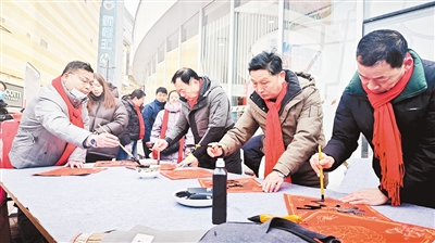 ↑2月7日,郾城区在东外滩丹尼斯广场举办义写春联活动。本报记者 应诗雨 摄