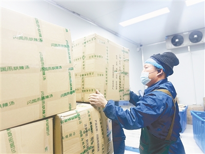 记者从旗舰店出发,驱车5分钟便到达闪国雨速食胡辣汤生产车间。这里自动化生产线正有条不紊地运转。工人将胡辣汤料包分装进礼盒,码放在传送带上。“为了赶春节订单,我们从去年12月份就增加了生产线,现在每天能生产5000余袋便携胡辣汤料包,其中礼盒装占比超六成。”闪国雨指着车间内的智能包装设备介绍,这些设备是他们于2024年投资200多万元引进的,能实现从原料处理到封装的全流程标准化操作。