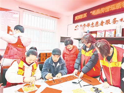 2月5日,源汇区老街街道滨西社居委在社区党群服务中心举办“笔墨传情迎新春 拓印纳福贺马年”主题活动。本报记者 孙 震 摄