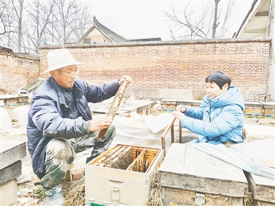 2月12日,郾城区商桥镇后甄村的一处空院里,一排排蜂箱整齐排列,养蜂人甄学义轻轻地打开蜂箱盖,观察蜜蜂生长情况。“当前是养蜂关键期。现在把蜜蜂养壮,等天暖和我就能带着它们逐花采蜜了。”甄学义对记者说,除了家里养的这些蜜蜂,还有一部分蜜蜂在广东,由儿子照看。