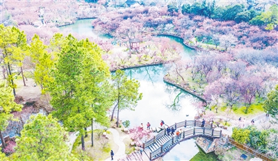 ①2月25日,游客在江苏扬州瘦西湖风景区赏梅游玩(无人机照片)。春意渐浓,各地美景吸引人们外出游玩赏景,尽享春日好时光。 新华社发 |