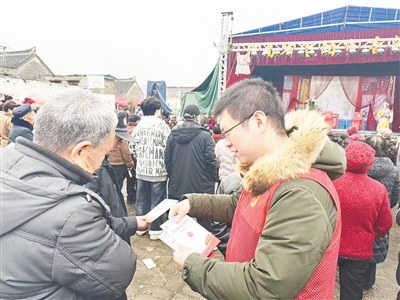 2月26日,郾城区司法局联合龙城司法所组织普法志愿者走进龙城镇冢马村,开展“精准普法基层行”主题宣传,把法律知识送到群众身边。张 航 摄
