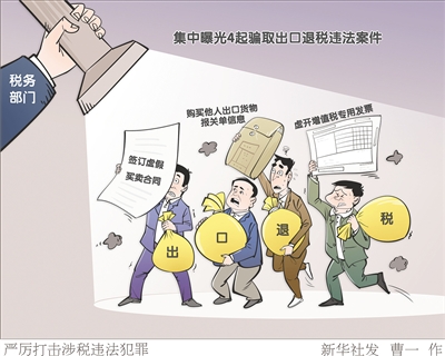 记者2月27日从国家税务总局获悉,当日,天津、黑龙江、贵州、重庆等地税务部门集中曝光4起骗取出口退税违法案件,个案最高涉案金额超2亿元。新华社发