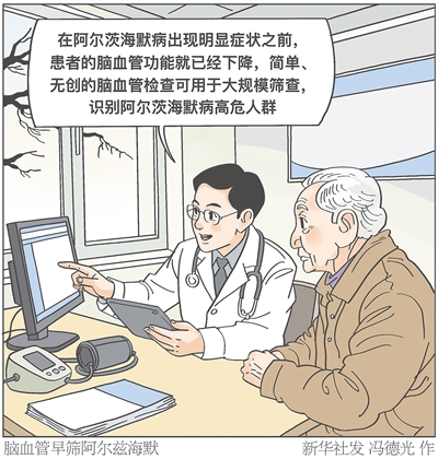 美国一项新研究显示,在阿尔茨海默病出现明显症状之前,患者的脑血管功能就已经下降。简单、无创的脑血管检查可用于大规模筛查,识别阿尔茨海默病高危人群。 新华社发