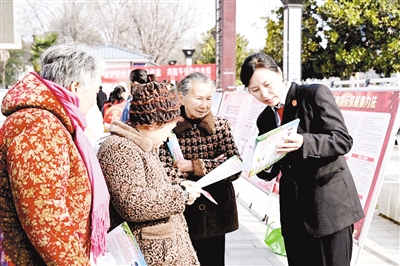 3月3日,临颍县人民法院组织固厢人民法庭干警到金龙广场,开展“三八”国际妇女节普法宣传活动,引导广大女性学会运用法律武器维护自身合法权益。张小婷 摄
