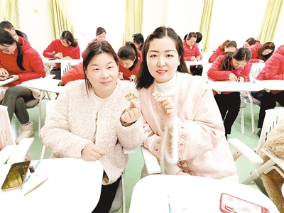 3月6日,在“三八”国际劳动妇女节来临之际,郾城区实验幼儿园举办以“螺钿凝匠心 胸针映师情”为主题的非遗螺钿胸针手工制作活动。胡 冬 摄
