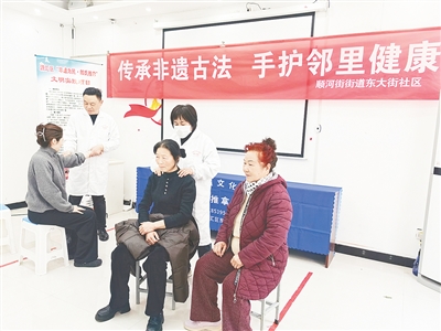 3月10日,源汇区顺河街街道东大街社居委在新时代文明实践站举办“传承非遗古法 手护邻里健康”活动。