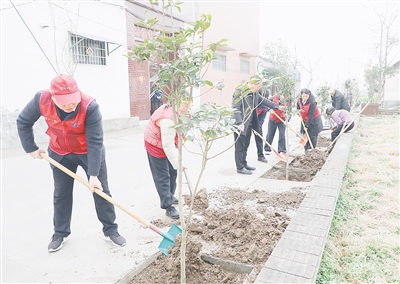 三月十六日,漯河日报社党员志愿者到帮扶村舞阳县太尉镇齐桥村开展义务植树活动。本报记者 范子恒 摄