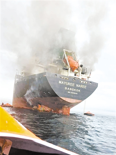 泰国海军发布通报称,一艘泰国货船三月十一日在霍尔木兹海峡海域航行时遭袭,目前有二十名船员获救并被送往阿曼安置。