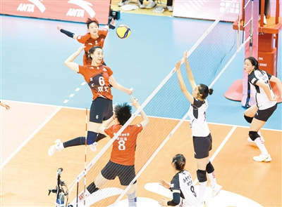 3月18日晚,2025—2026赛季中国女排超级联赛争夺5至8名排位赛开打。河南双汇女排坐镇主场,以25比18、25比15和25比23完胜浙江西塘姚庄女排。21日,河南双汇女排将客场再战浙江女排。图为河南双汇女排6号黄瑞蕾扣球。